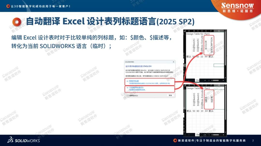 SOLIDWORKS自动翻译Excel设计表列标题语言(2025 SP2)